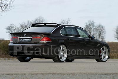 車頭保險桿配合HAMANN擾流板,增加車輛在高速行駛過程中的下壓力,使得車輛更加穩(wěn)定。側(cè)面的裙角讓車子看起來更加的低垂,后面則是HAMANN一貫以來的作風(fēng),在后擋風(fēng)玻璃的上部是擾流板,而排氣管則隱藏在保險桿下方的擾流板內(nèi)。