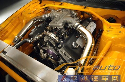 野馬GT-R配備了5.0升440馬力“Cammer”發(fā)動機,這款發(fā)動機源自Mod 4.6升四閥V8發(fā)動機家族,福特的工程師將Mod發(fā)動機的缸徑從90.2毫米改進成94毫米,這樣發(fā)動機排量就變成了5.0升。在賽事規(guī)則下,福特工程師可以對這款發(fā)動機進行改造,從而使最大輸出功率超過500馬力。