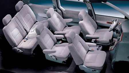 內(nèi)廂寬敞舒服座椅的布置是2十2十3模式,中間為走道,后排兩邊雙開門,上下十分方便。后排座椅的軌道很長,可以收折后向前移動,當(dāng)4人乘坐時能提供長1,024m m、寬1,625mm、高1,235mm的超大行李空間。中排座椅的設(shè)計最出色,不僅象前排座椅一樣有手枕,更可以向后旋轉(zhuǎn)180度,中排與后排面對而坐,方便乘客在車上交談和娛樂。中排座椅的靠背放平后還可以作臨時的餐臺或工作臺,上面有固定的杯座,同時車廂邊有12V電源插座,隨時可以接上手提電腦和其他電子娛樂設(shè)備。倘若停車休息,可以把中排座椅的靠背放平,與后排相連成一張床,小睡一會也很舒服。