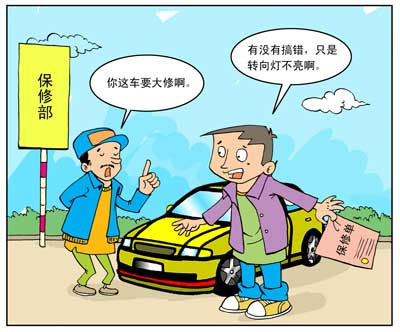 陷阱4 小病大修 汽修廠為了賺取更多的利潤(rùn),很容易小題大做,沒毛病的地方說成有毛病,小毛病又說成大毛病,是不少維修廠慣用的騙人伎倆。 【典型案例】 幾十元修好“病入膏肓” 車主:李雙河 車型:桑塔納3000 李先生:“我這輛車才買了不到一個(gè)月,偶爾踩急剎車后會(huì)熄火。我去第一家維修廠,維修工說我這是自動(dòng)變速故障,建議我大修,去第二家維修廠,維修工說是真空管破裂,要我花200元,可是當(dāng)我去了第三家維修廠,工人給我換了一個(gè)繼電器,才花了幾十元錢! 【防陷絕招】 長(zhǎng)期選定一個(gè)固定的維修站 從事汽車維修與管理工作38年之久的專家胡建軍先生建議到路邊店修車時(shí),最好能帶上一個(gè)比較懂行的朋友。尤其是新車的維護(hù)保養(yǎng),最好長(zhǎng)期選定一個(gè)固定的、廠家指定的特約維修站進(jìn)行保養(yǎng)。如果“流動(dòng)式”地保養(yǎng),在遇到較大零部件需要索賠時(shí),往往會(huì)出現(xiàn)幾個(gè)廠家相互推諉的局面,給車主帶來很多不必要的麻煩。尤其是首次保養(yǎng)點(diǎn)的選擇對(duì)保修責(zé)任的成立是否有影響,一直是一個(gè)存在爭(zhēng)議的問題。如果始終如一地堅(jiān)持在同一地點(diǎn),有關(guān)車輛質(zhì)量問題申訴就不會(huì)有什么麻煩了。同時(shí),如果始終如一地堅(jiān)持在同一地點(diǎn),有利于車輛檔案的完整性,一旦車輛發(fā)生變動(dòng),完整的車輛檔案會(huì)起到關(guān)鍵作用。 在了解修理廠的基本信息后,可貨比三家或經(jīng)朋友推薦,也可充分利用現(xiàn)代信息查詢系統(tǒng)獲得很多有用信息(如信譽(yù)度等),或者從廠家提供的說明書中推薦的特約維修站選擇修理廠。第一要比服務(wù)承諾,第二要比在業(yè)務(wù)接待、登記、初檢、維修、終檢全部作業(yè)過程中是否規(guī)范,第三是價(jià)格是否合理,第四是維修周期是否適當(dāng)。