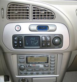 藍(lán)瑟內(nèi)飾的變化也集中在局部,整體用料和做工的考究同樣值得欣喜。無(wú)論是視覺(jué)上還是觸覺(jué)上,藍(lán)瑟都明顯好過(guò)前者。方向盤及車內(nèi)許多部件都有銀鈦裝飾。出風(fēng)口改為橢圓形,與整體風(fēng)格一致,下面原本帶有液晶屏的全自動(dòng)恒溫空調(diào)被半自動(dòng)空調(diào)代替,雖然制冷效果仍舊不錯(cuò),但卻不可避免地造成了此處的配置縮水,影響了藍(lán)瑟車內(nèi)裝備的打分。藍(lán)瑟EXi中音響系統(tǒng)的機(jī)頭依舊采用了2DIN模式,只是取消了原來(lái)的卡帶,一些按鍵控制也有細(xì)微變化。但重點(diǎn)在于原來(lái)的10碟CD機(jī)也被一并取消。而HUD抬頭顯示器同樣沒(méi)有出現(xiàn)在藍(lán)瑟的車內(nèi)。作為補(bǔ)償,雙安全氣囊、4輪碟剎+ABS,以及電動(dòng)后視鏡都成了藍(lán)瑟全系的標(biāo)配。在EXi型號(hào)上還增加了后視鏡加熱和倒車?yán)走_(dá)。